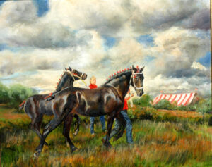 Recently, Beth has been branching out, painting the landscape which surrounds her West Bath, Maine farm, along with the dwindling northeastern landscape that she loves so much. Many of her landscape paintings have been inspired when riding her horses or hiking with her dogs.